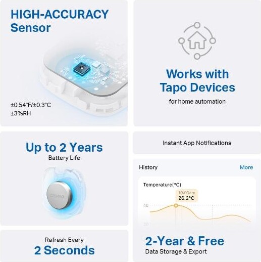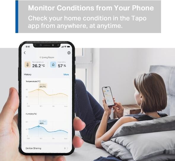 Сензор за температура и влажност TP-Link Tapo T310, WiFi