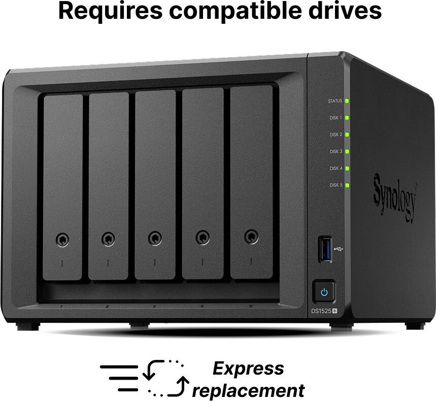 Synology DiskStation DS1525+ е мощна и гъвкава NAS система, създадена за професионалисти, малки и средни бизнеси, както и за напреднали домашни потребители, които търсят надеждно съхранение, бърза работа и мащабируемост.