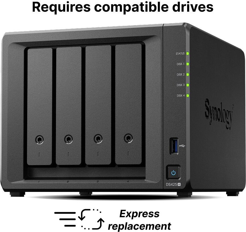 Мрежов сторидж NAS Synology DS425+,4-bay за 3.5" 2.5", 2 x M.2 NVMe