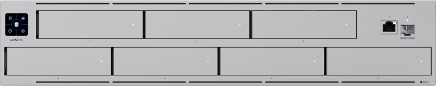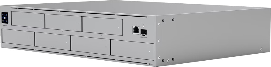 Ubiquiti UNAS-Pro-8-EU 2U rack-mount NAS with (8) 2.5/3.5" HDD bays and (2) M.2 NVMe SSD cache slots, delivering faster access, lower latency, and high-availability 10 Gbps networking for large-scale file storage and sharing