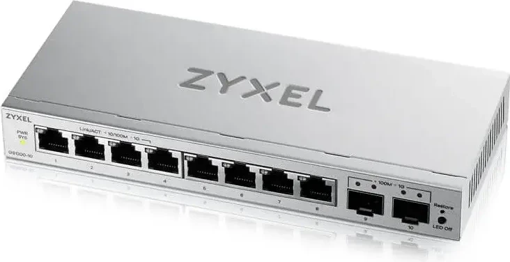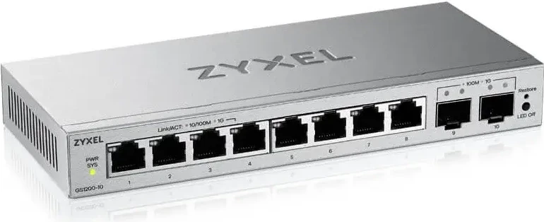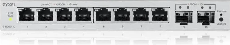 Суич ZyXEL GS-1200-10, V3, Управляем, 8 портов, 10/100/1000 с 2Gbe Uplink