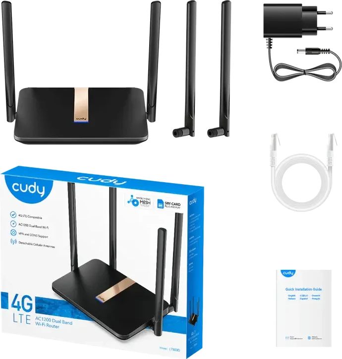 Безжичен рутер Cudy LT500D, 4G LTE, 5GHz, 1200 Mbps, 10/100