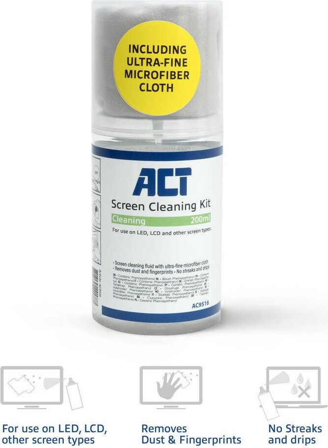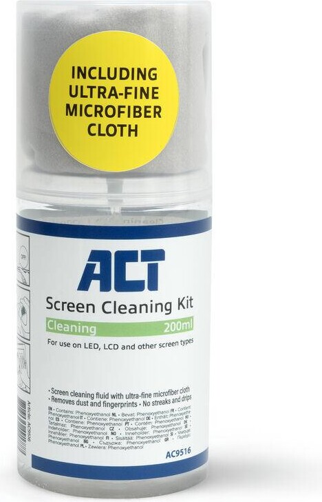 ACT Спрей за почистване на екрани с микрофибърна кърпа,200мл