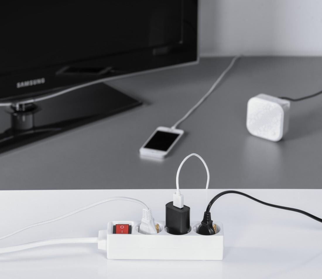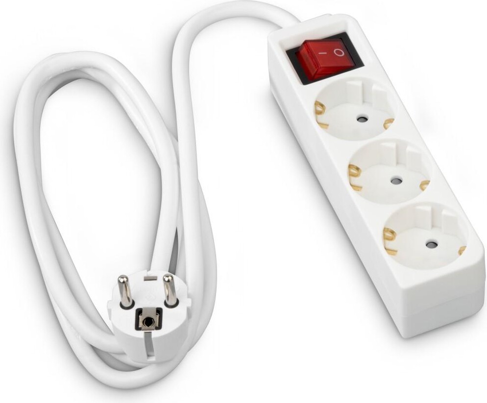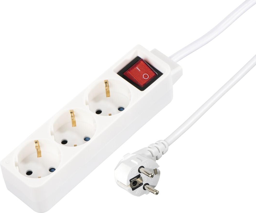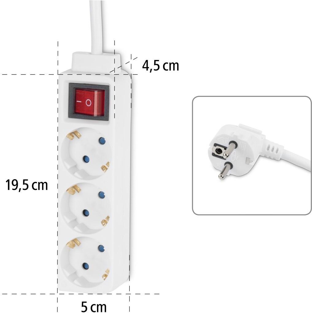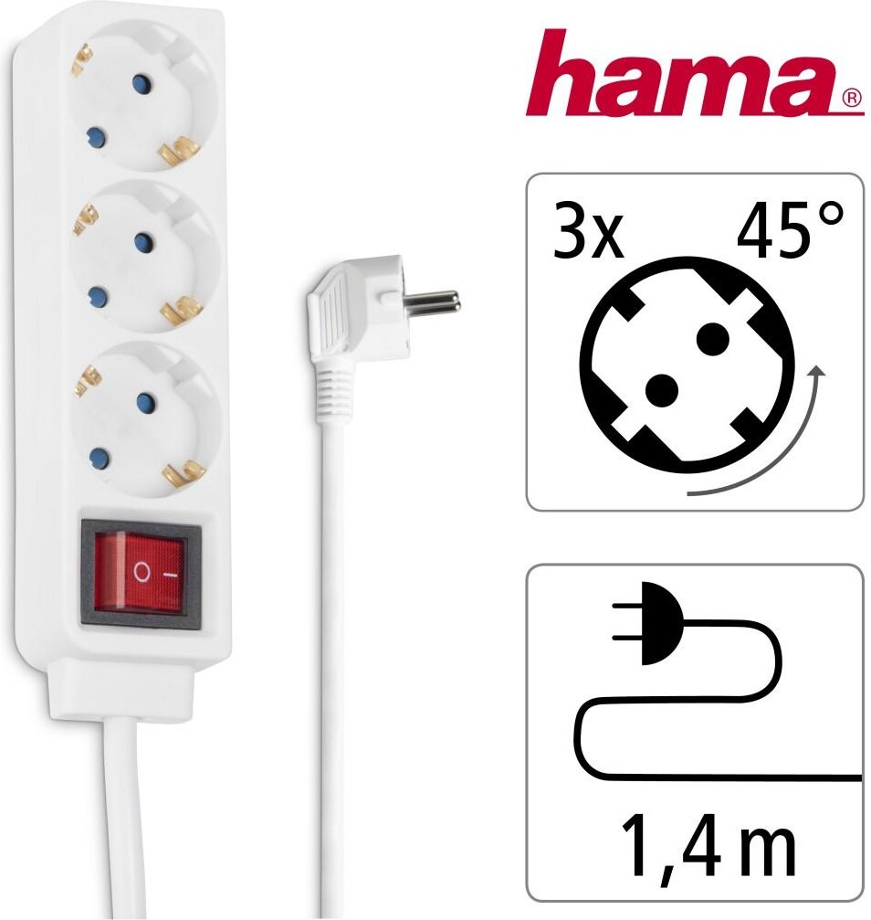 HAMA Разклонител 3 гнезда, 1.4м, бял с бутон за вкл/изкл.