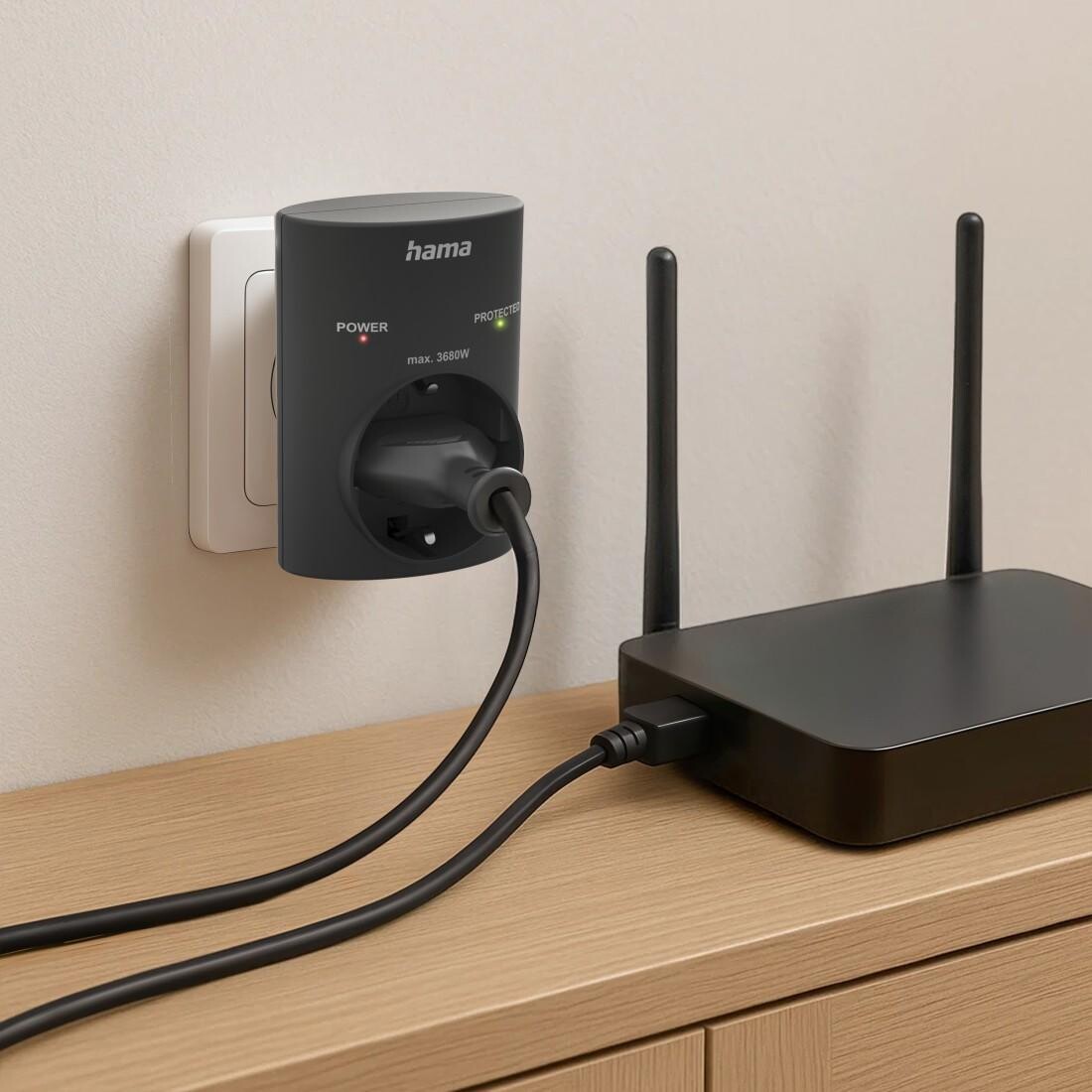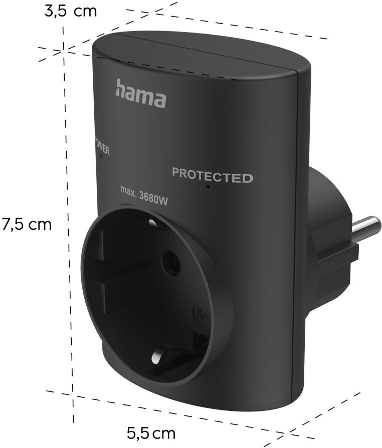 HAMA Контакт с вградена защита от пренапрежение, черен