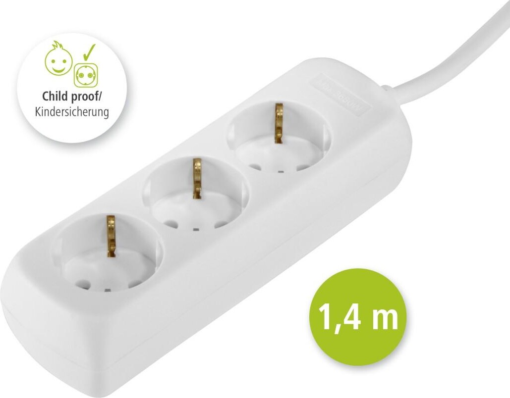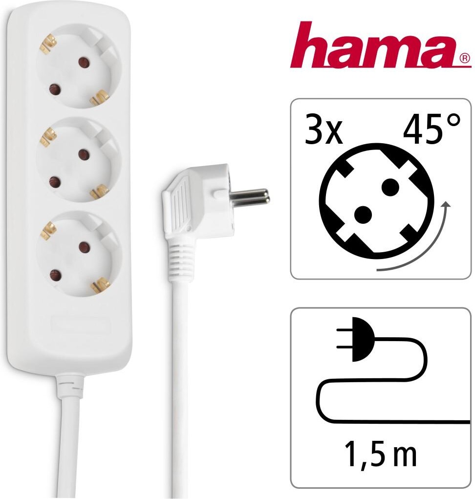 HAMA Разклонител 3 гнезда, 1.4м, бял
