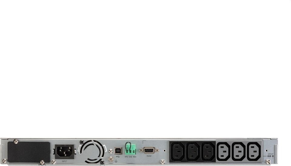 Rack - 482.6 mm (19 inch) device; USB port (HID compliant), Serial port (RS232), Mini-terminal block for remote On/Off and Remote Power Off, Dry contacts (2 outputs, optocoupler, RJ); One slot for optional communication card