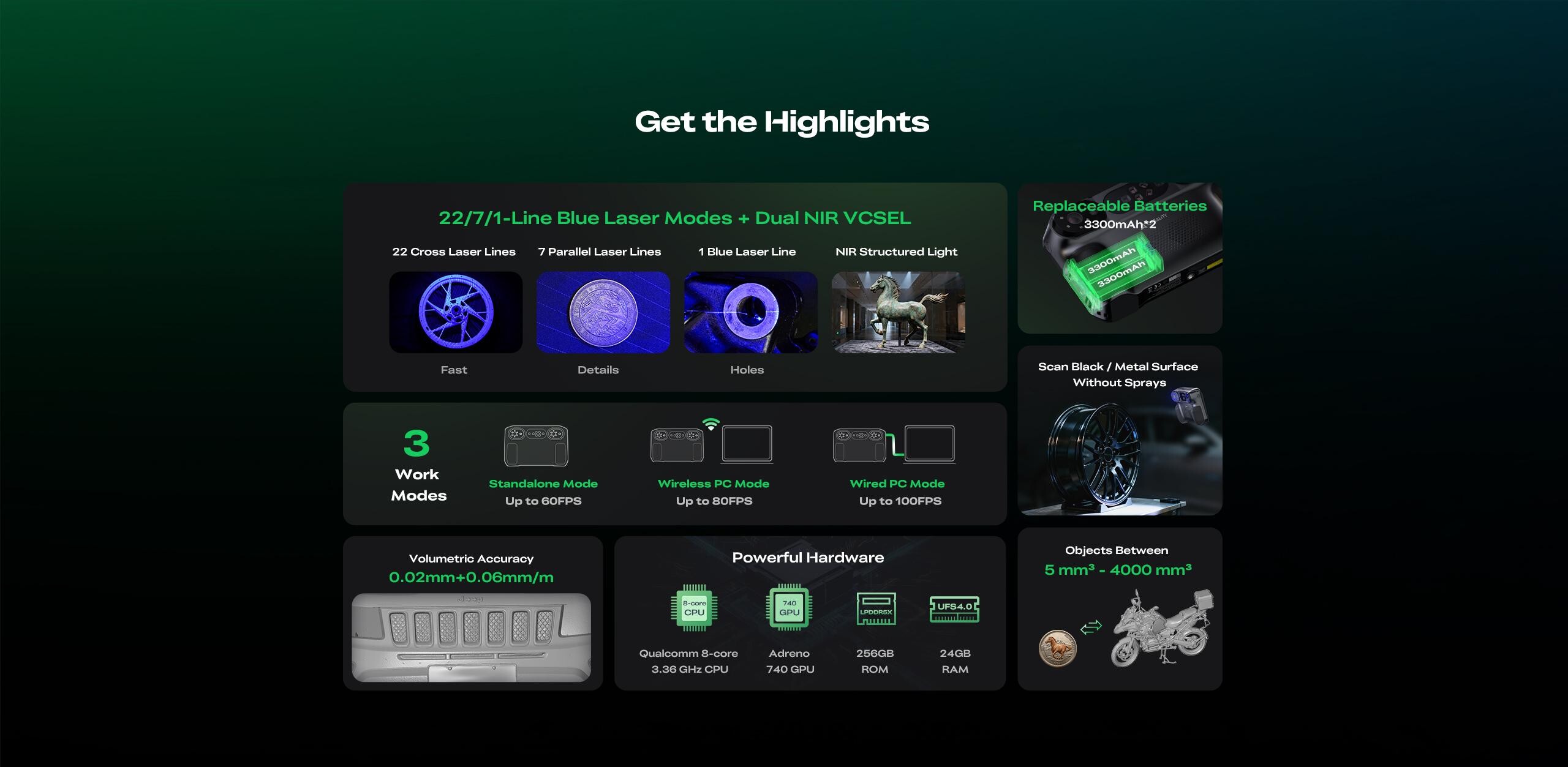 Сканиране на тъмни и метални повърхности (в повечето случаи без необходимост от спрей)