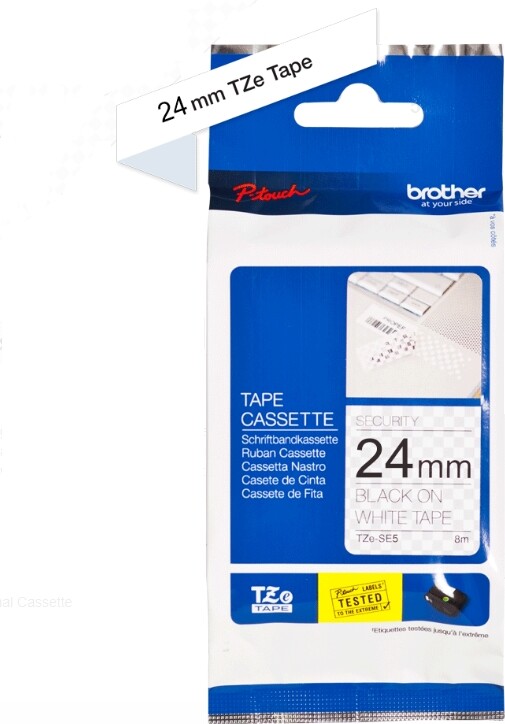 Консуматив Brother TZe-SE5 Security Tape, black on white, 24mm, 8m