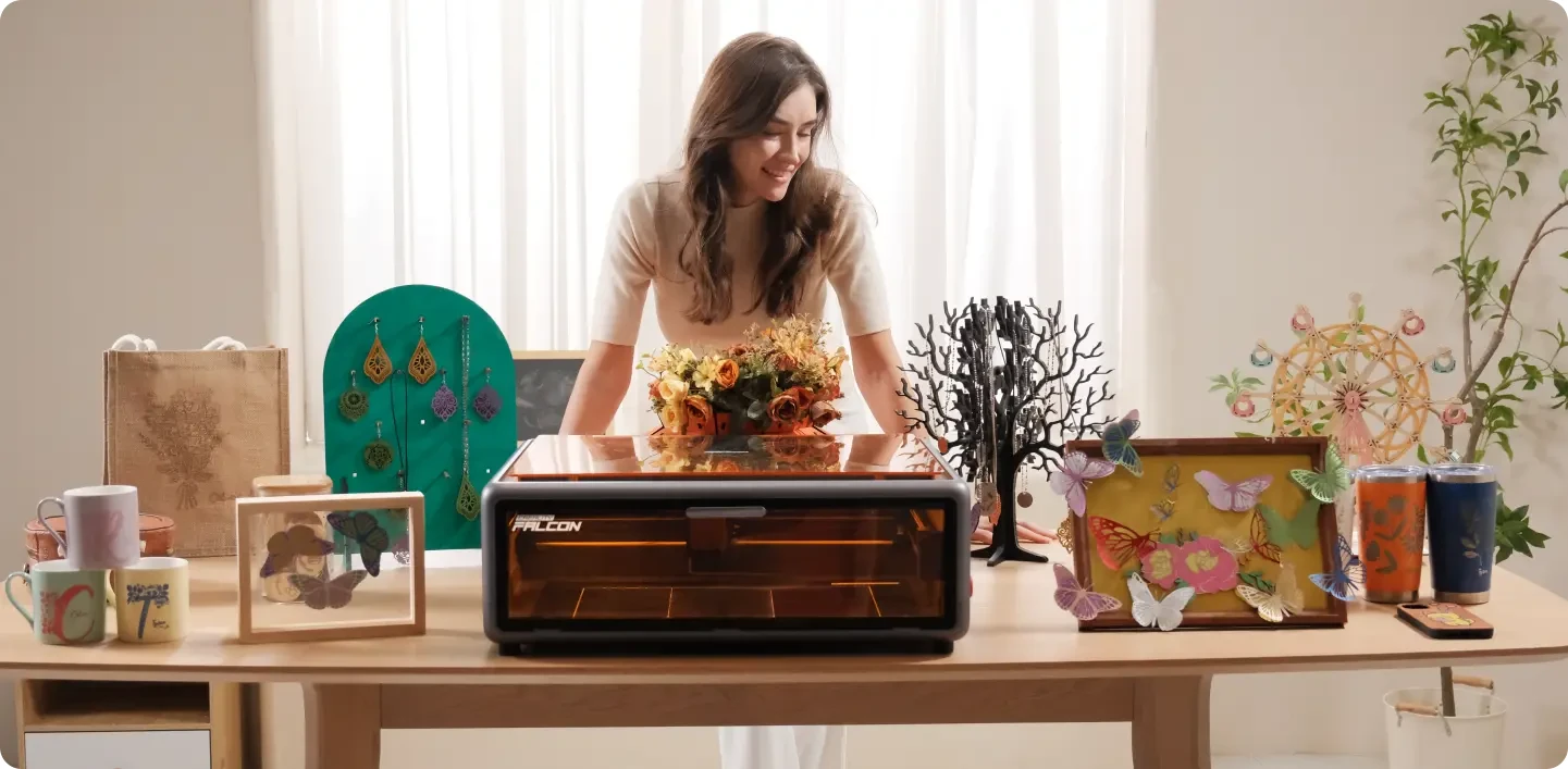 Falcon A1 10W комбинира висока скорост и изключителна точност при гравиране и рязане на картон, дърво, акрил, кожа и много други материали. Вградената HD камера и интелигентното разпознаване на материали гарантират перфектно позициониране и минимални грешки.