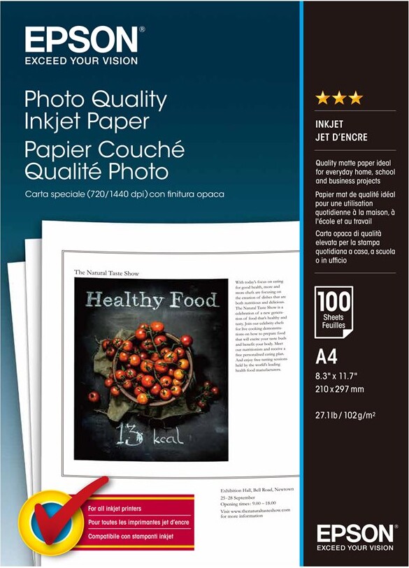 With this white matt 102 g/m hard paper, the printing result of the PhotoReal quality color print is optimized up to 1444 dpi. Excellent for demanding commercial color graphics, flyers, and posters.