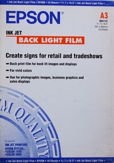 Хартия Epson Ink Jet Back Light Film - A3 Size - 297 Mm X 420 Mm - Pn 41131 - 10 листа - EPS41131